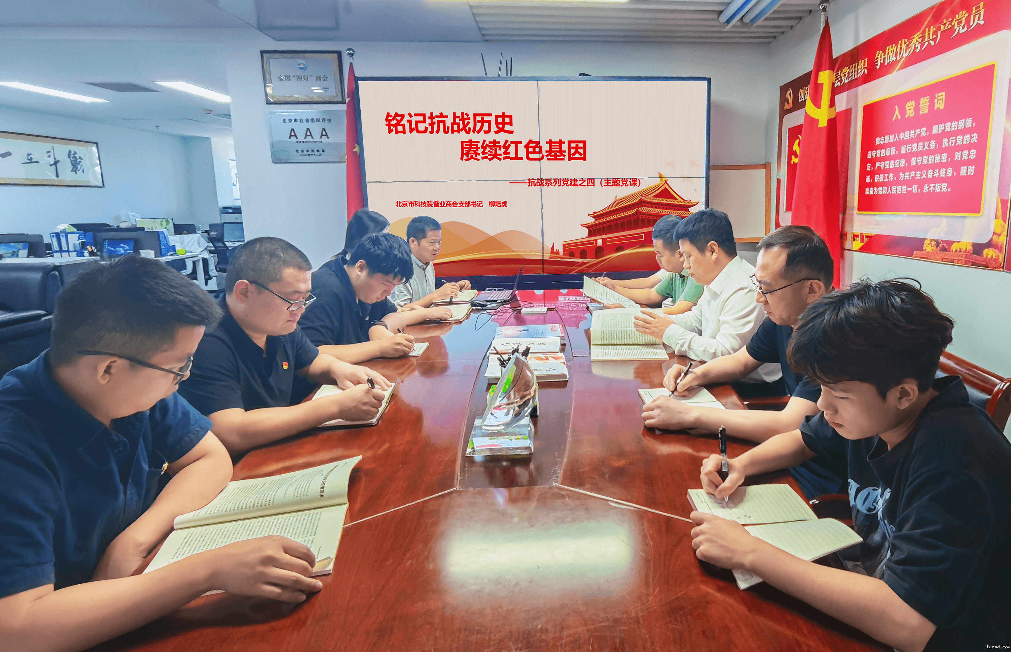 最后,柳培虎书记强调:我们以“铭记抗战历史,赓续红色基因”为主题,参观了中国人民抗日战争纪念馆、观看了《南京照相馆》、集中观看阅兵,今天又专题讲授党课,旨在传承抗战精神,珍爱和平,开创未来。希望每名同志通过一系列的主题党日活动,把爱国情怀转化为干事创业的动力,在担当使命中传承精神力量,在科技兴国中强化血肉联系,在攻坚克难中做到实干笃行,为中华民族复兴大业贡献力量。